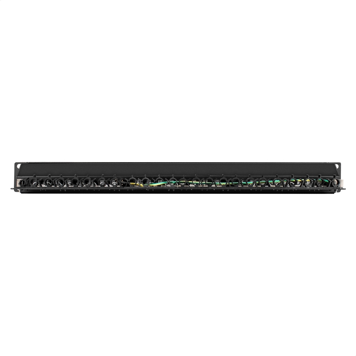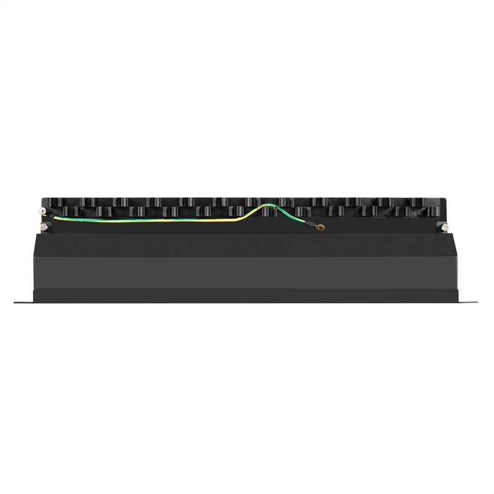 Панель имеет встроенный органайзер для фиксации подходящих с обратной стороны кабелей. С лицевой стороны порты панели имеют цифровую нумерацию и площадки для дополнительной маркировки. Имеется проводник заземления.