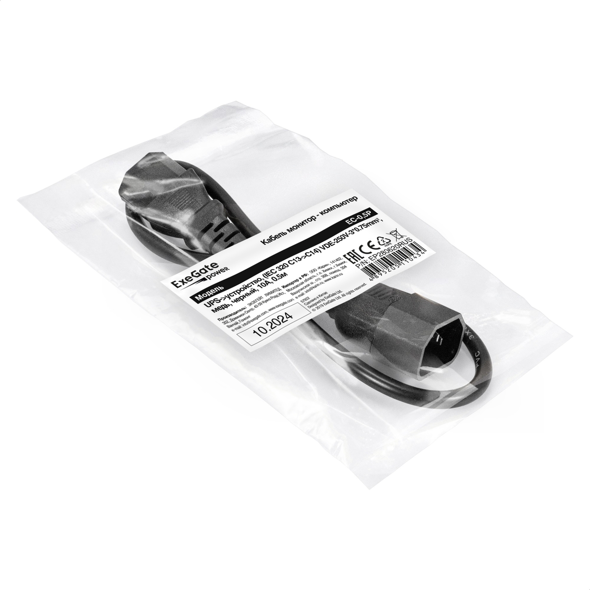 Кабель питания ExeGate Power EC-0.5P-C13->C14/3x0.75Cu (C13->C14, VDE-250V-3*0.75mm2, медь, черный, 10A, 0.5м)