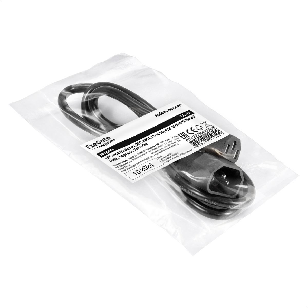 Кабель питания ExeGate Power EC-1P-C13->C14/3x0.75Cu (C13->C14, VDE-250V-3*0.75mm2, медь, черный, 10A, 1м)