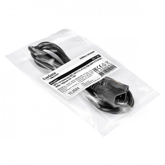 Кабель питания ExeGate Power EC-1.8P-C13->C14/3x0.5Cu (C13->C14, VDE-250V-3*0.5mm2, медь, черный, 6A, 1.8м)