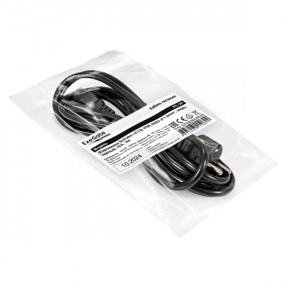Кабель питания ExeGate Power PC-3P-Schuko->C13/3x1.0Cu (Евровилка Schuko->C13, VDE-250V-3*1.0mm2, медь, черный, 10A, 3м)