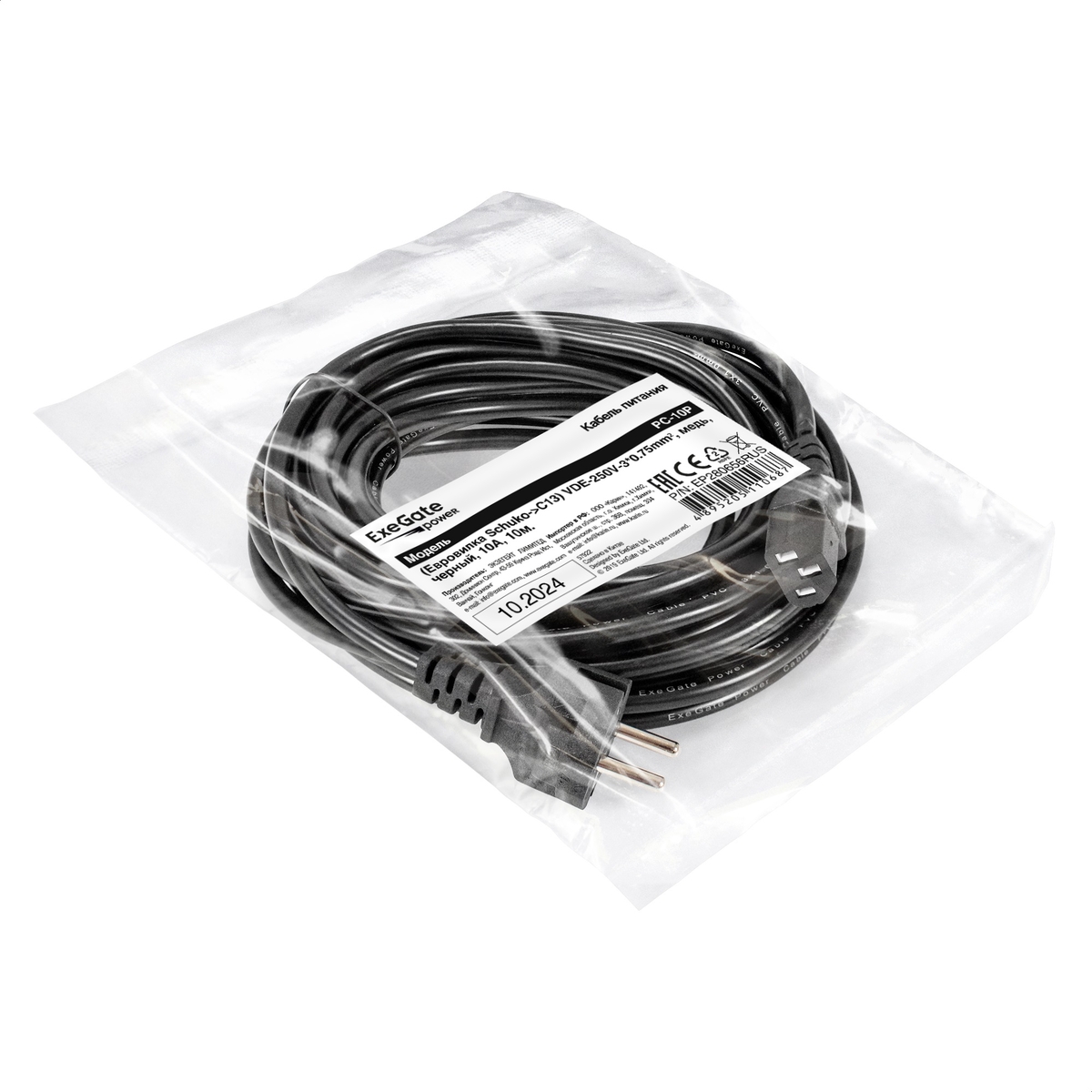 Кабель питания ExeGate Power PC-10P-Schuko->C13/3x0.75Cu (Евровилка Schuko->C13, VDE-250V-3*0.75mm2, медь, черный, 10A, 10м)