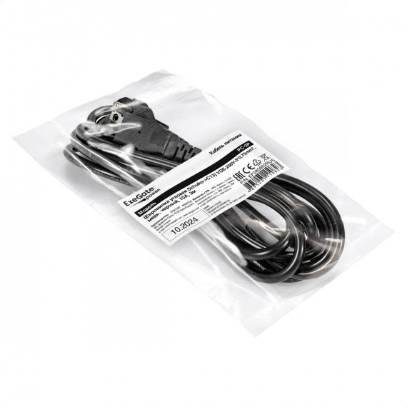 Кабель питания ExeGate Power PC-3P-Schuko(У)->C13/3x0.75Cu (Евровилка угловая Schuko->C13, VDE-250V-3*0.75mm2, медь, черный, 10A, 3м)