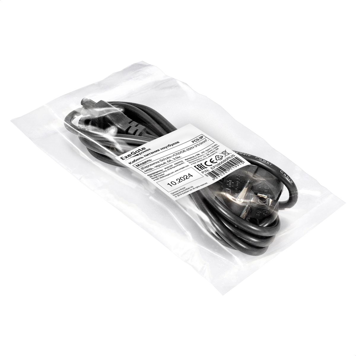 Кабель питания ноутбуков ExeGate Power PC5-3P-Schuko->C5/3x0.5Cu (Евровилка Schuko->C5, VDE-250V-3*0.5mm2, медь, черный, 6A, 3м)