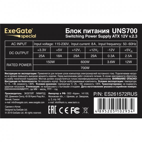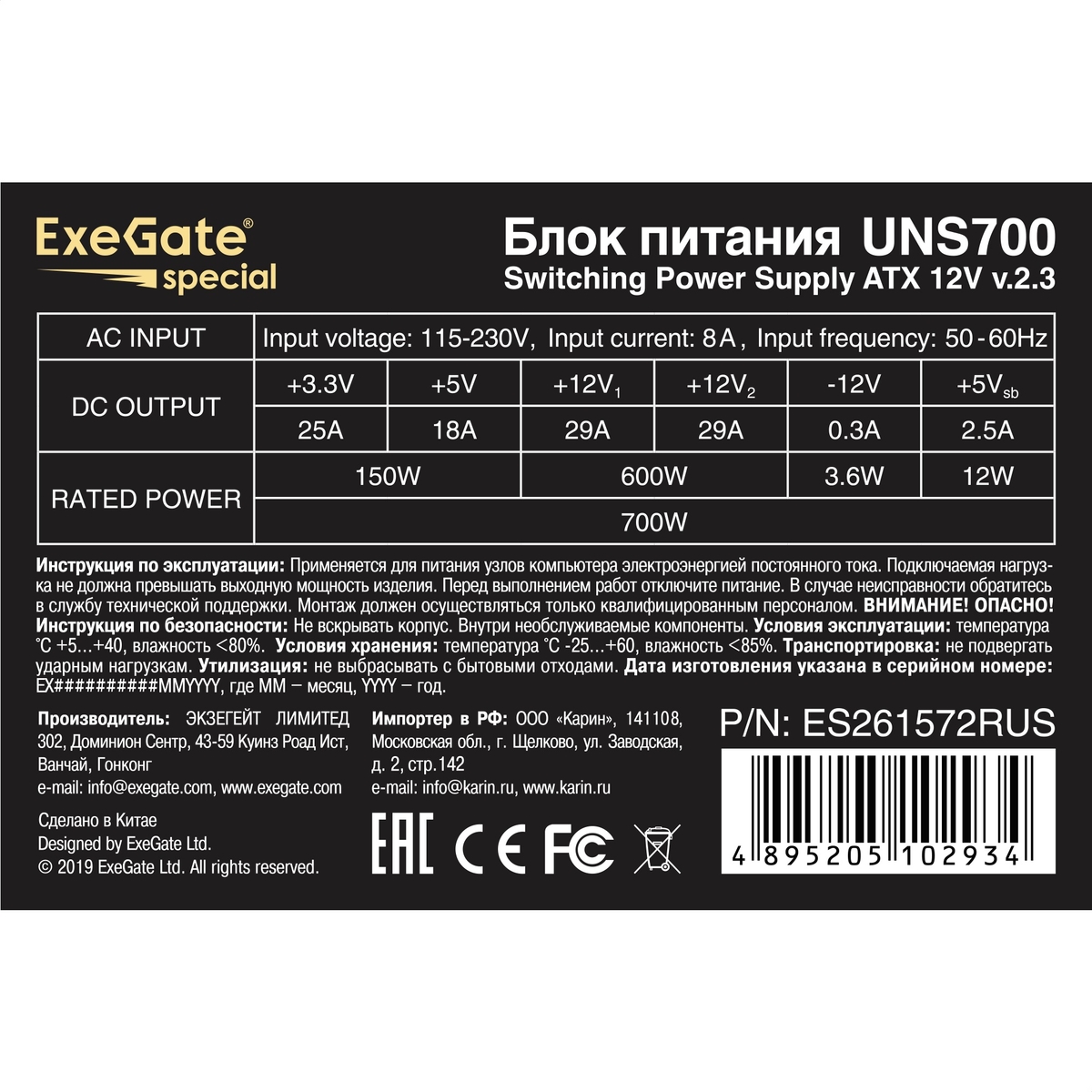 Exegate ES261572RUS-PC Блок питания 700W UNS700