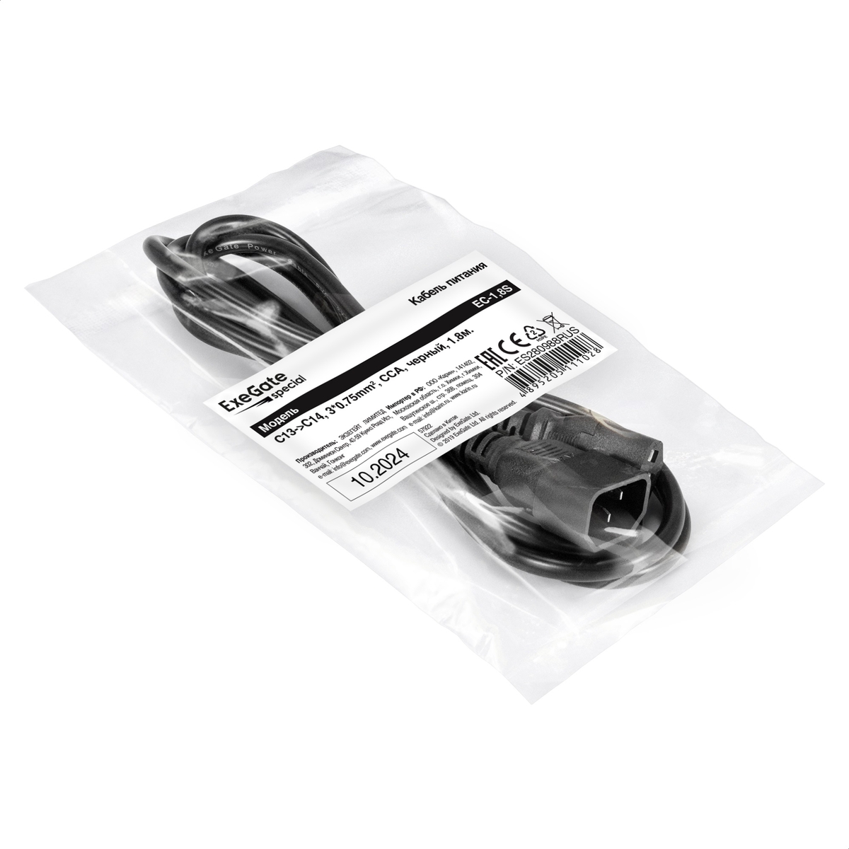 Кабель питания ExeGate Special EC-1.8S-C13->C14/3x0.75 (C13->C14, 3*0.75mm2, CCA, черный, 1.8м)