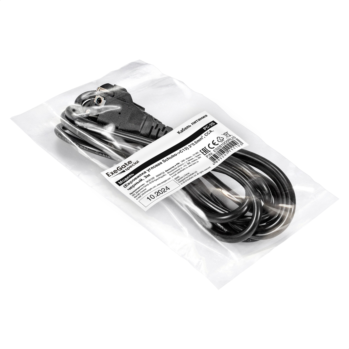 Кабель питания ExeGate Special PC-3S-Schuko(У)->C13/3x0.5 (Евровилка угловая Schuko->C13, 3*0.5mm2, CCA, черный, 3м)