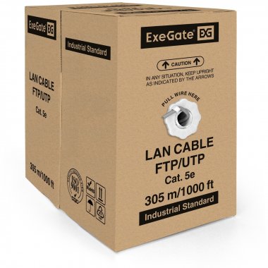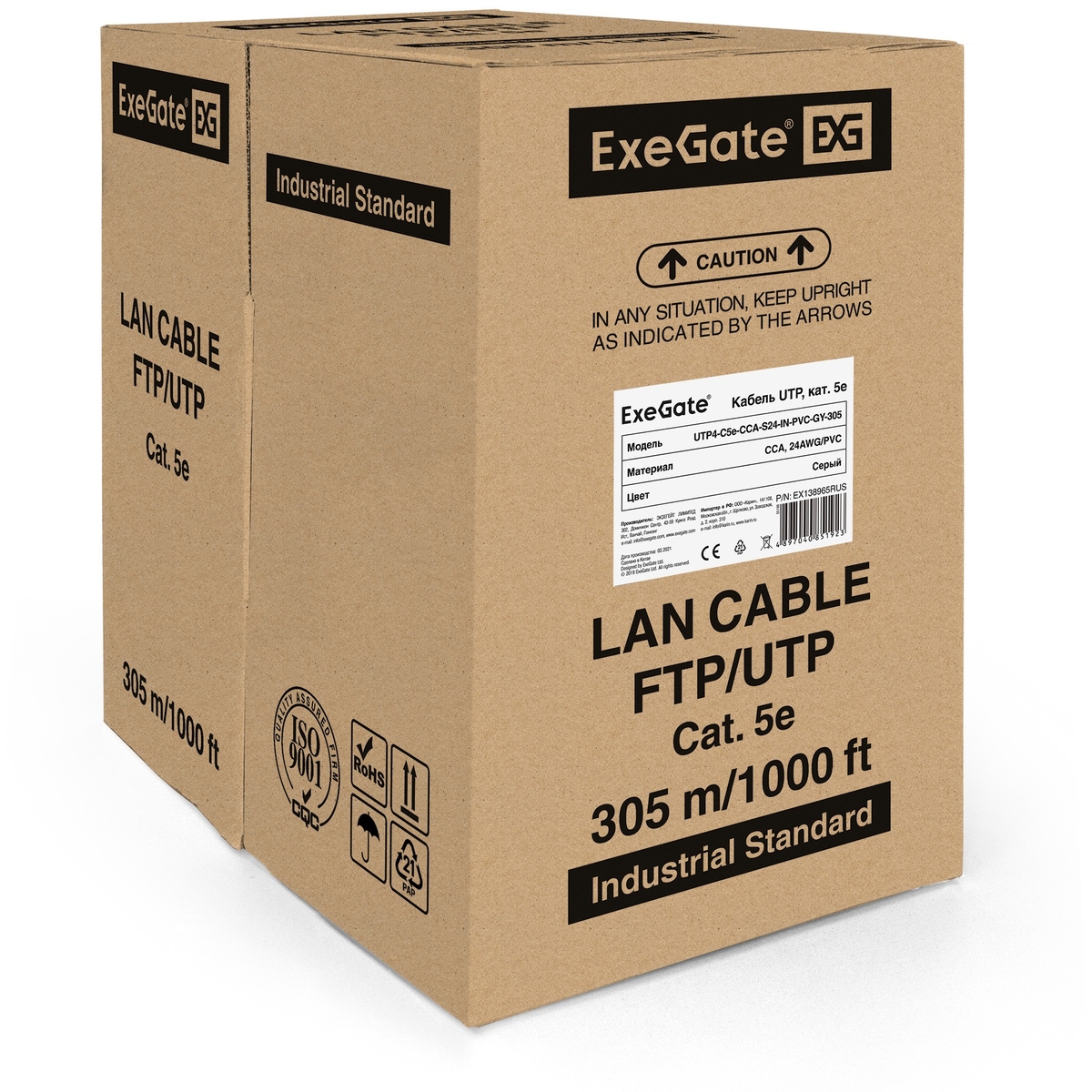 Кабель ExeGate UTP4-C5e-CCA-S24-IN-PVC-GY-305 UTP 4 пары кат.5e CCA, 24AWG, бухта 305м, серый, PVC