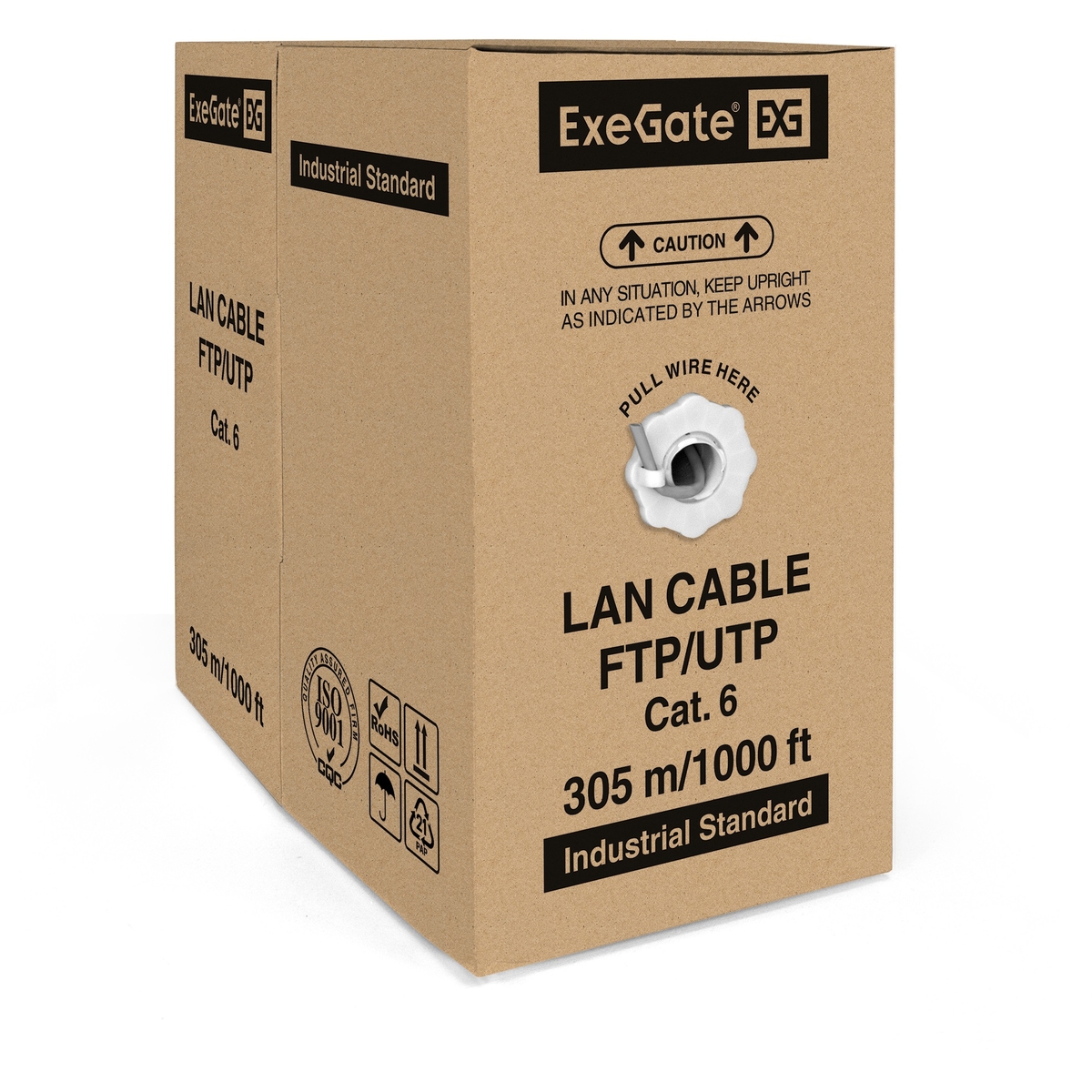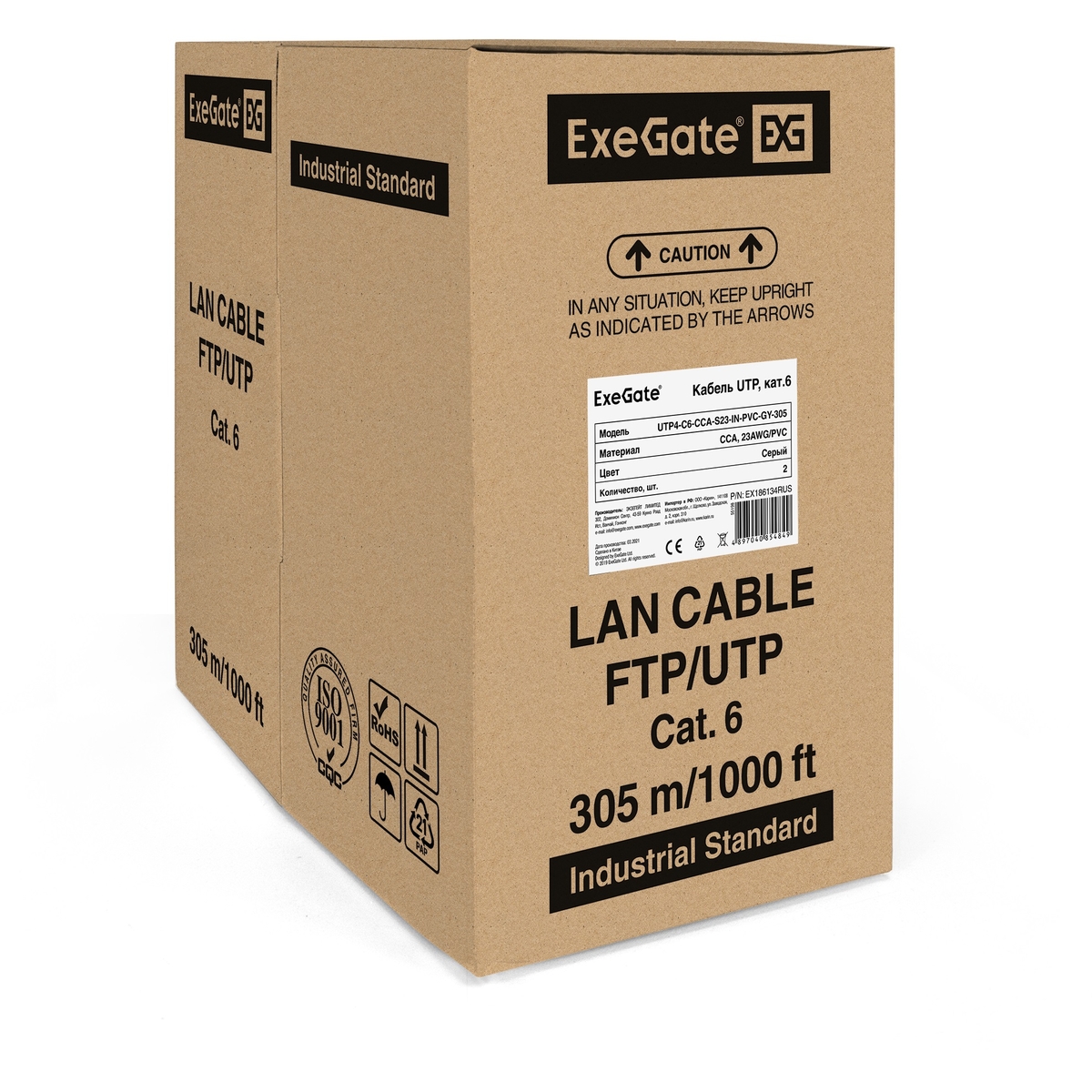 Кабель ExeGate UTP4-C6-CCA-S23-IN-PVC-GY-305 UTP 4 пары кат.6 CCA, 23AWG, бухта 305м, серый PVC