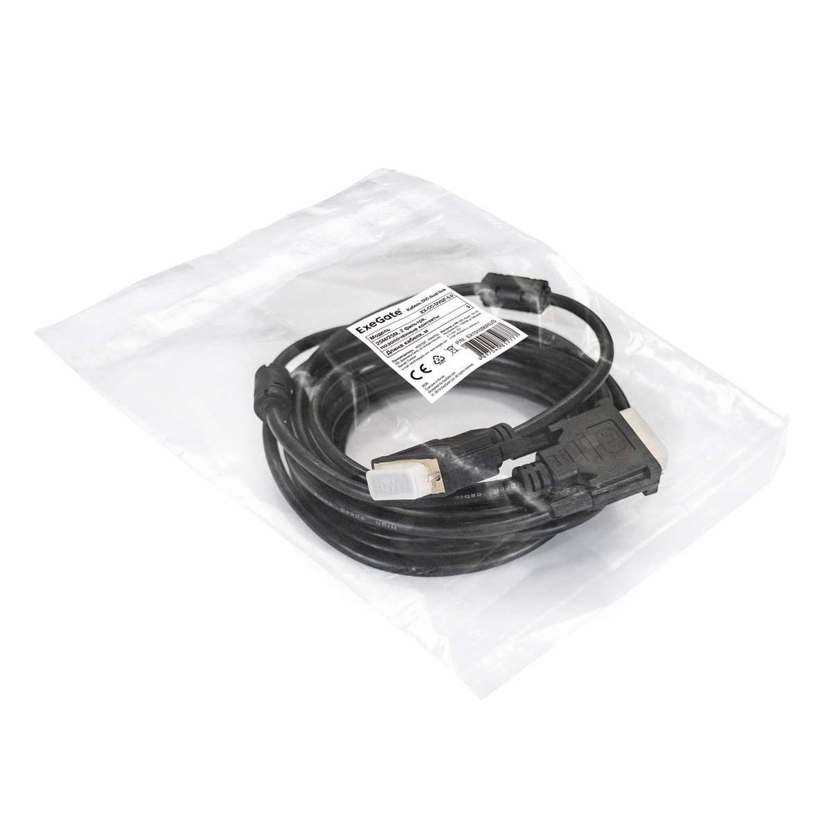Кабель DVI dual link ExeGate EX-CC-DVI2F-5.0 (25M/25M, 5м, 2 фильтра, позолоченные контакты)