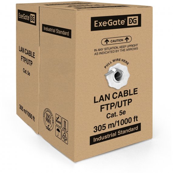 Кабель ExeGate UTP4-C5E-CCA-P24-IN-PVC-GY-305 UTP 4 пары кат.5e CCA, многожильный, бухта 305м, серый, PVC