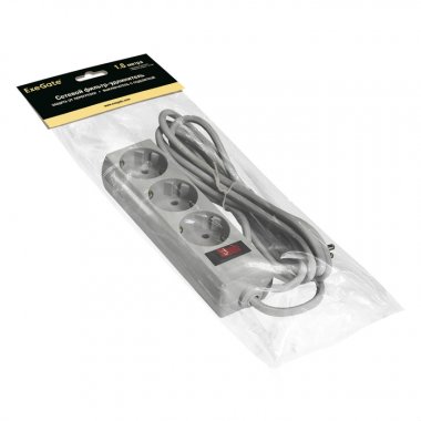 Сетевой фильтр ExeGate SP-3-1.8G (3 евророзетки с заземлением, 1.8м, защита от перегрузки, выключатель с подсветкой, серый)