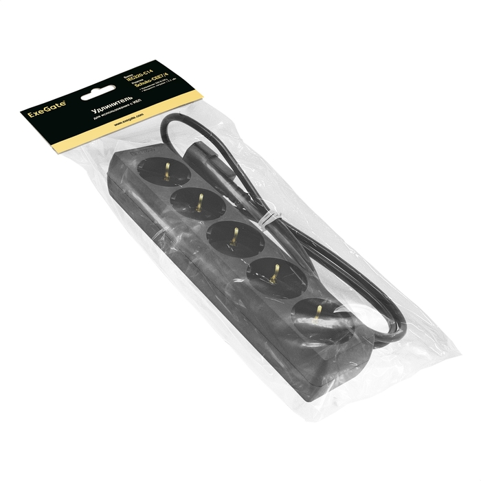 Удлинитель для ИБП ExeGate SPU-5-0.5B (5 евророзеток с заземлением, 0.5м, вилка IEC320-C14 (UPS), черный)