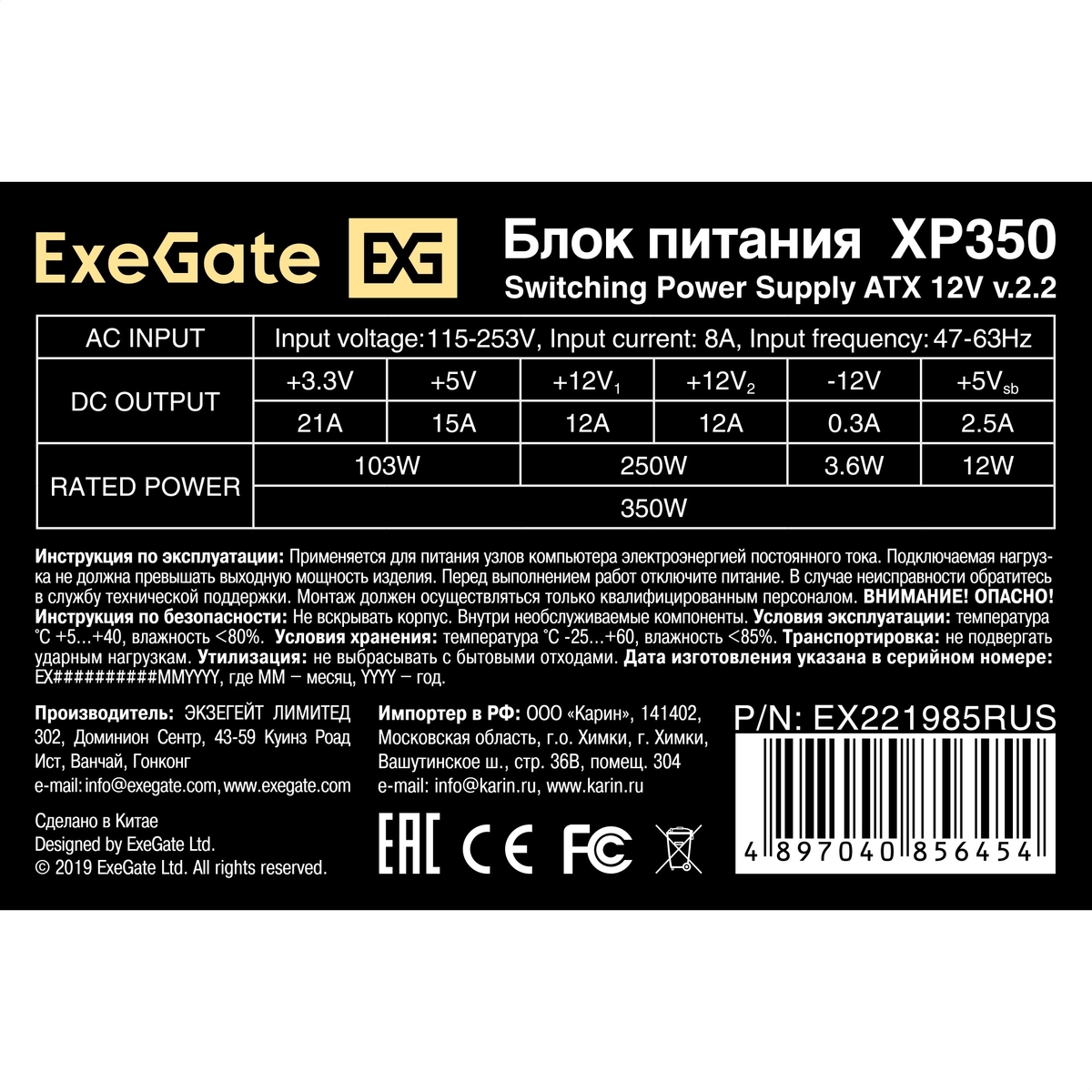 Exegate EX221985RUS-S Блок питания 350W XP350
