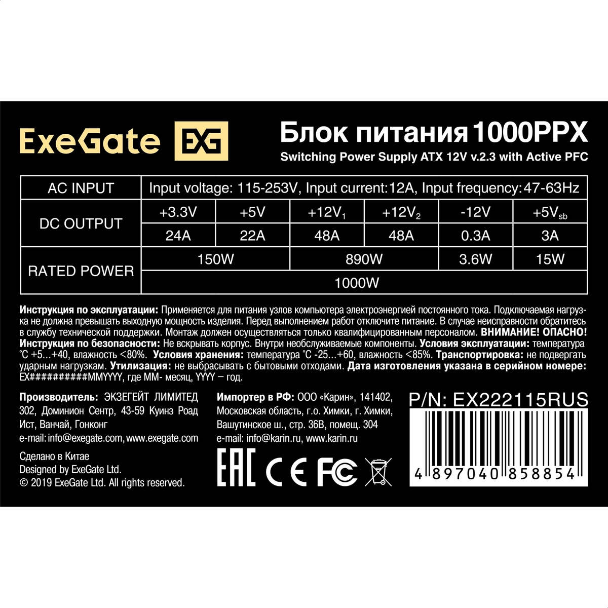 Exegate EX222115RUS Блок питания 1000W 1000PPX