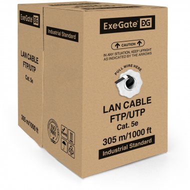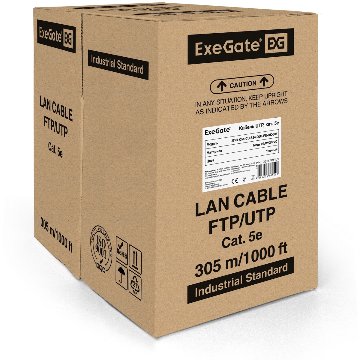 Кабель ExeGate UTP4-C5e-CU-S24-OUT-PE-BK-305-FLUKE UTP 4 пары кат.5e медь, 24AWG, FLUKE® test pass, внешн., без троса, бухта/катушка 305м, черн., PE