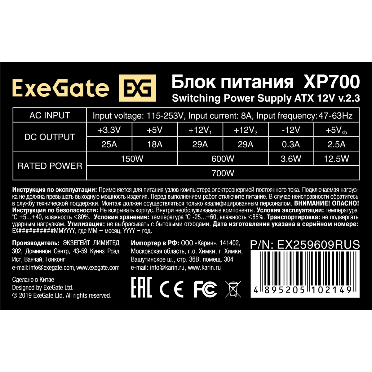 Exegate EX259609RUS-S Блок питания 700W XP700