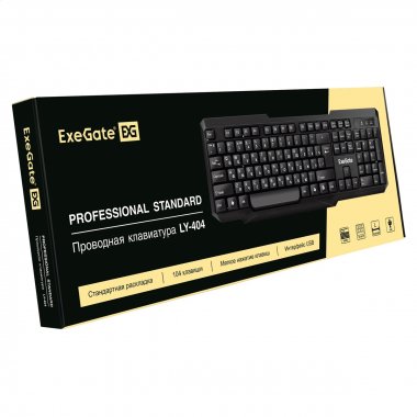Клавиатура ExeGate Professional Standard LY-404 (USB, полноразмерная, влагозащищенная, 104кл., Enter большой, длина кабеля 1,35м, черная, Color Box)