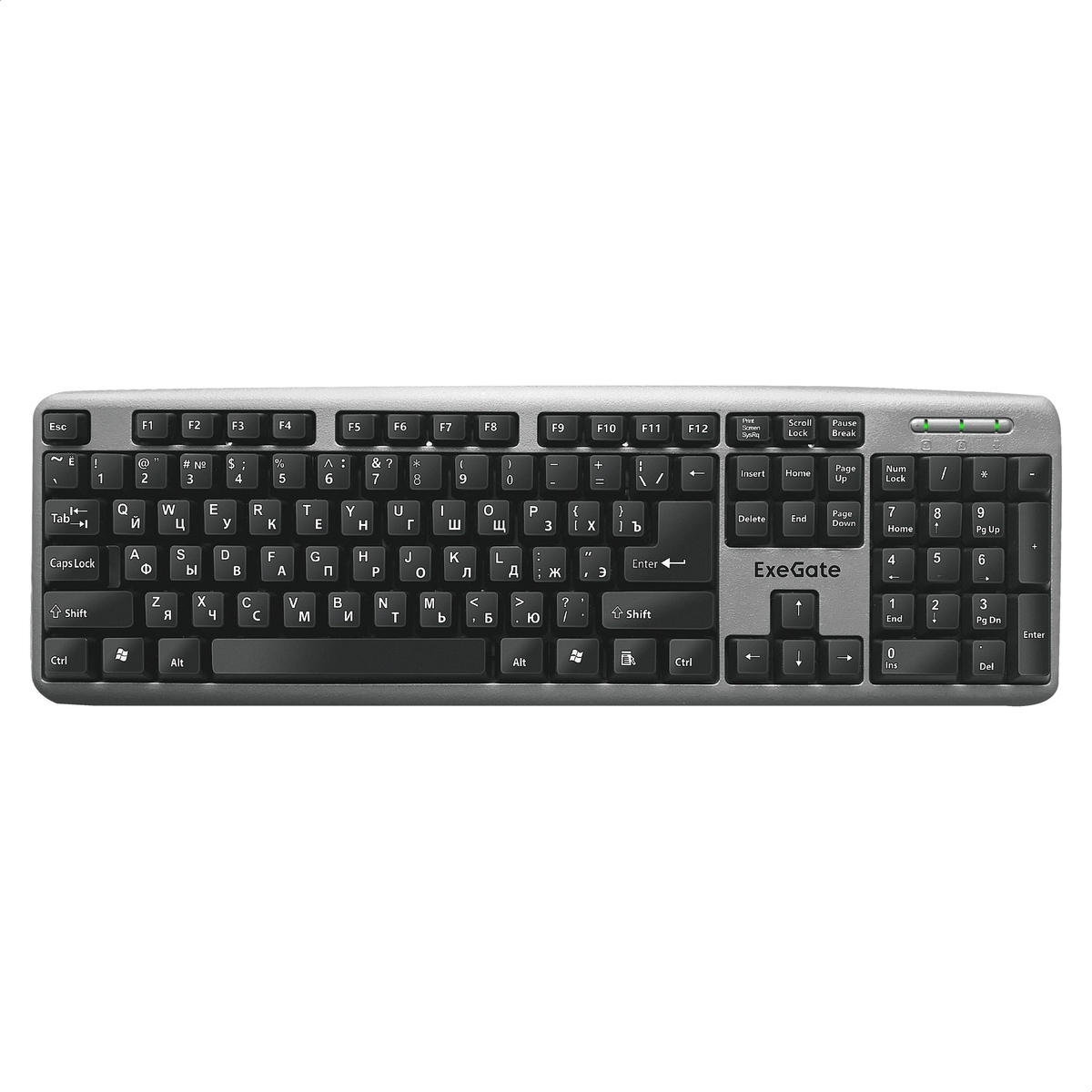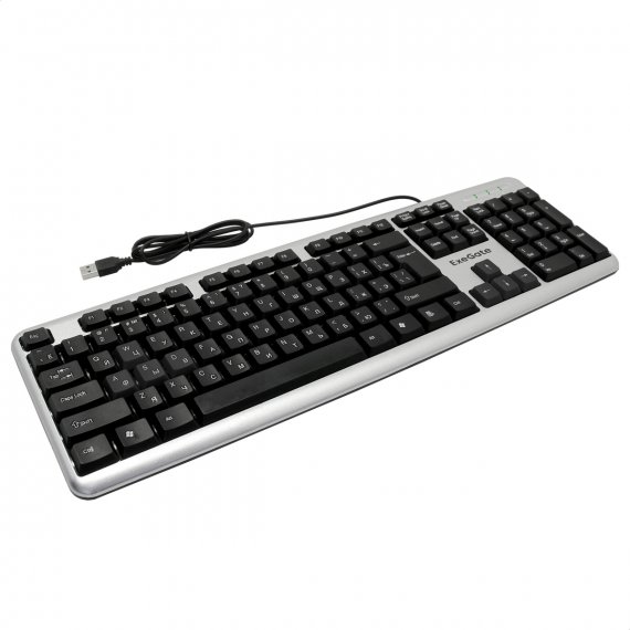 Клавиатура ExeGate Professional Standard LY-401 (USB, полноразмерная, влагозащищенная, 104кл., Enter большой, длина кабеля 1,35м, серебристый корпус, Color Box)