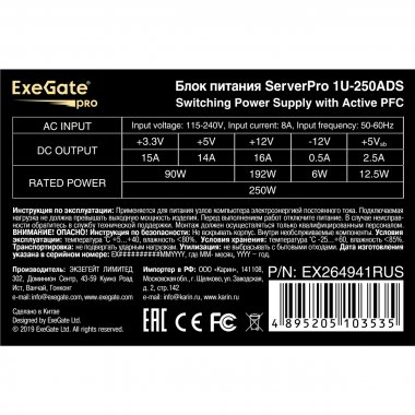 Серверный БП 250W ExeGate ServerPRO-1U-250ADS