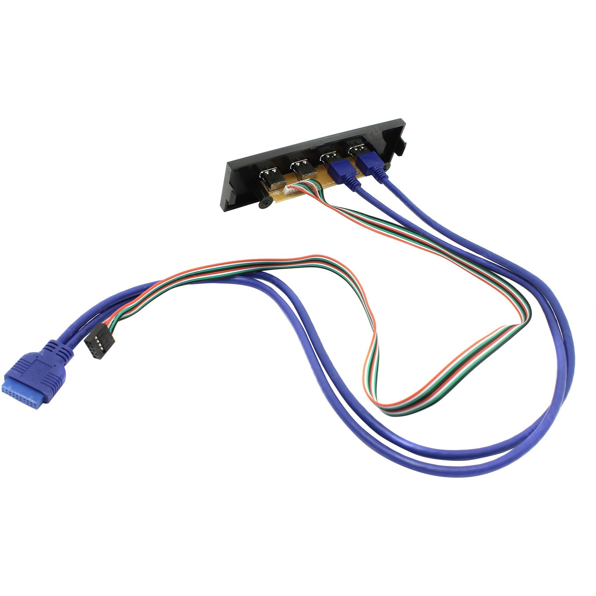 Планка USB на переднюю панель ExeGate U5H-614, 5.25", 2*USB+2*USB3.0, черная, подсоединение к мат. плате