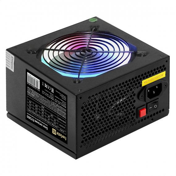 Блок питания 800W ExeGate EVO800 (ATX, APFC, КПД 80% (80 PLUS), SC, 12cm RGB fan, 24pin, 2x(4+4)pin, 2xPCI-E, 6xSATA, 3xIDE, Cable Management, black, кабель 220V 1,8м с защитой от выдергивания)