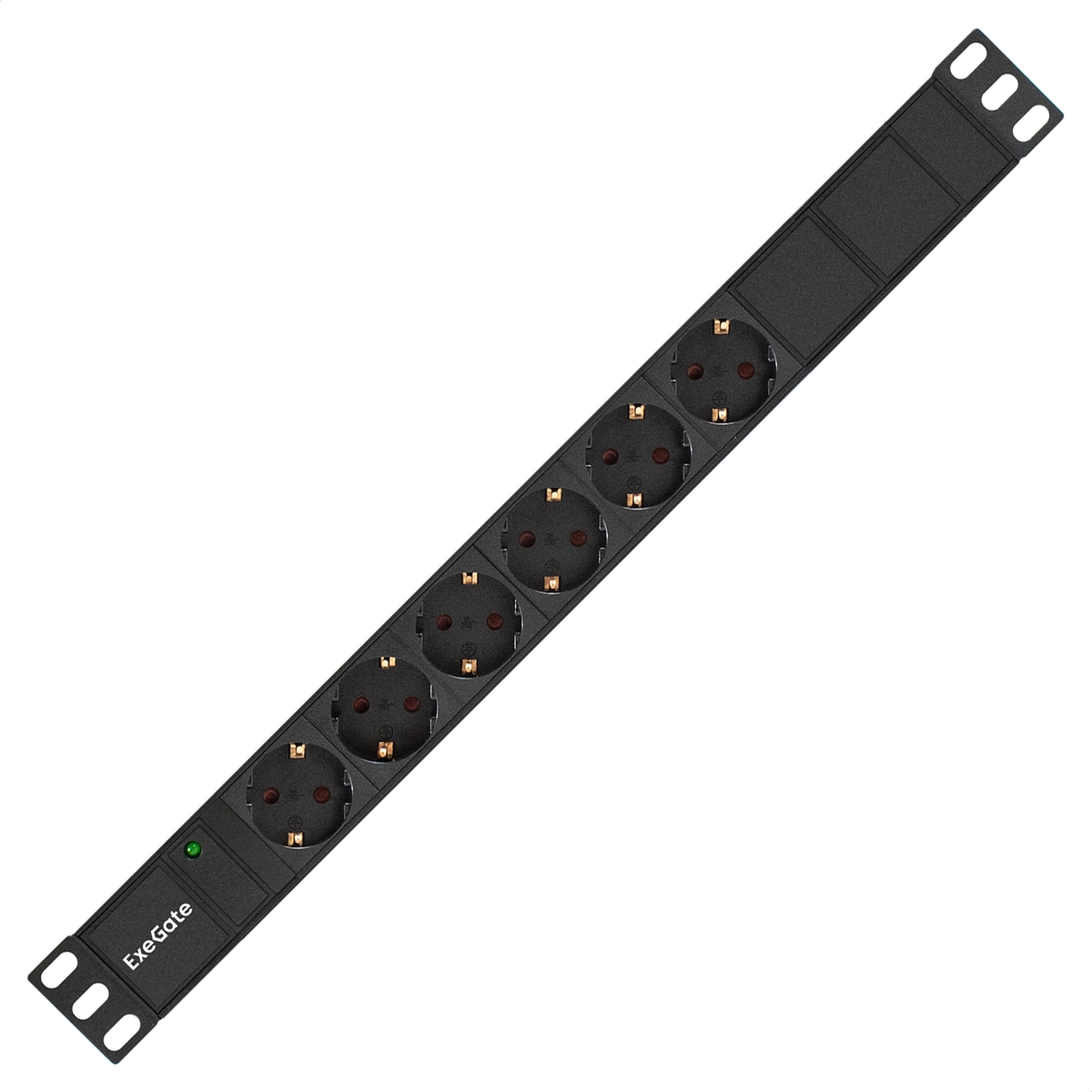 Блок розеток с разъемом подключения C14 ExeGate ServerPro PDU-19H601 Al-6S-C14 (19", 1U, Алюминий, 6 Schuko, C14, индикатор питания, черный, RTL)