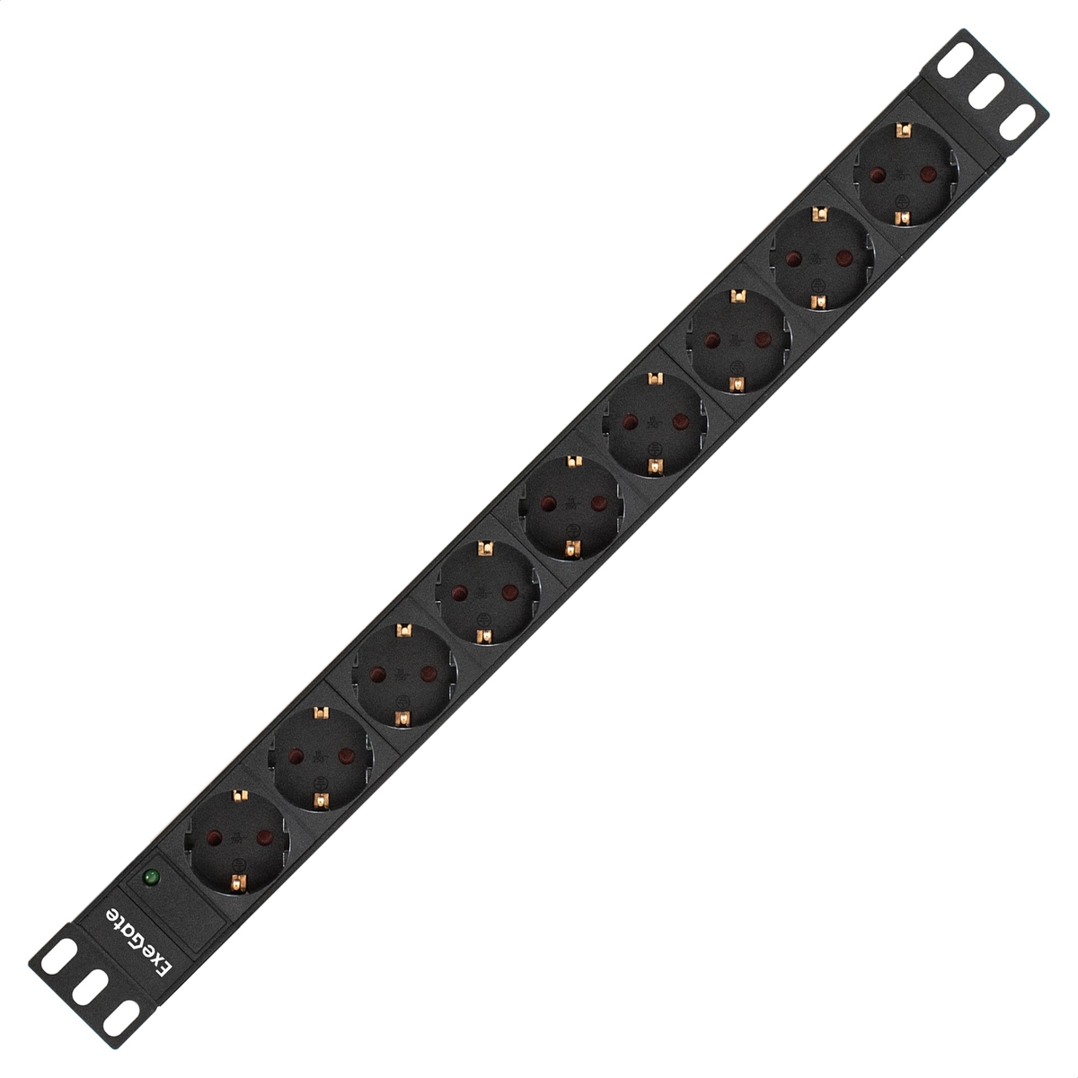 Блок розеток с кабелем с евровилкой ExeGate ServerPro PDU-19H902 Al-9S-EU1.8CU (19", 1U, Алюминий, 9 Schuko, кабель с евровилкой VDE-250V-16A-3*1.5mm2, медь, 1.8 метра, индикатор питания, черный, RTL)