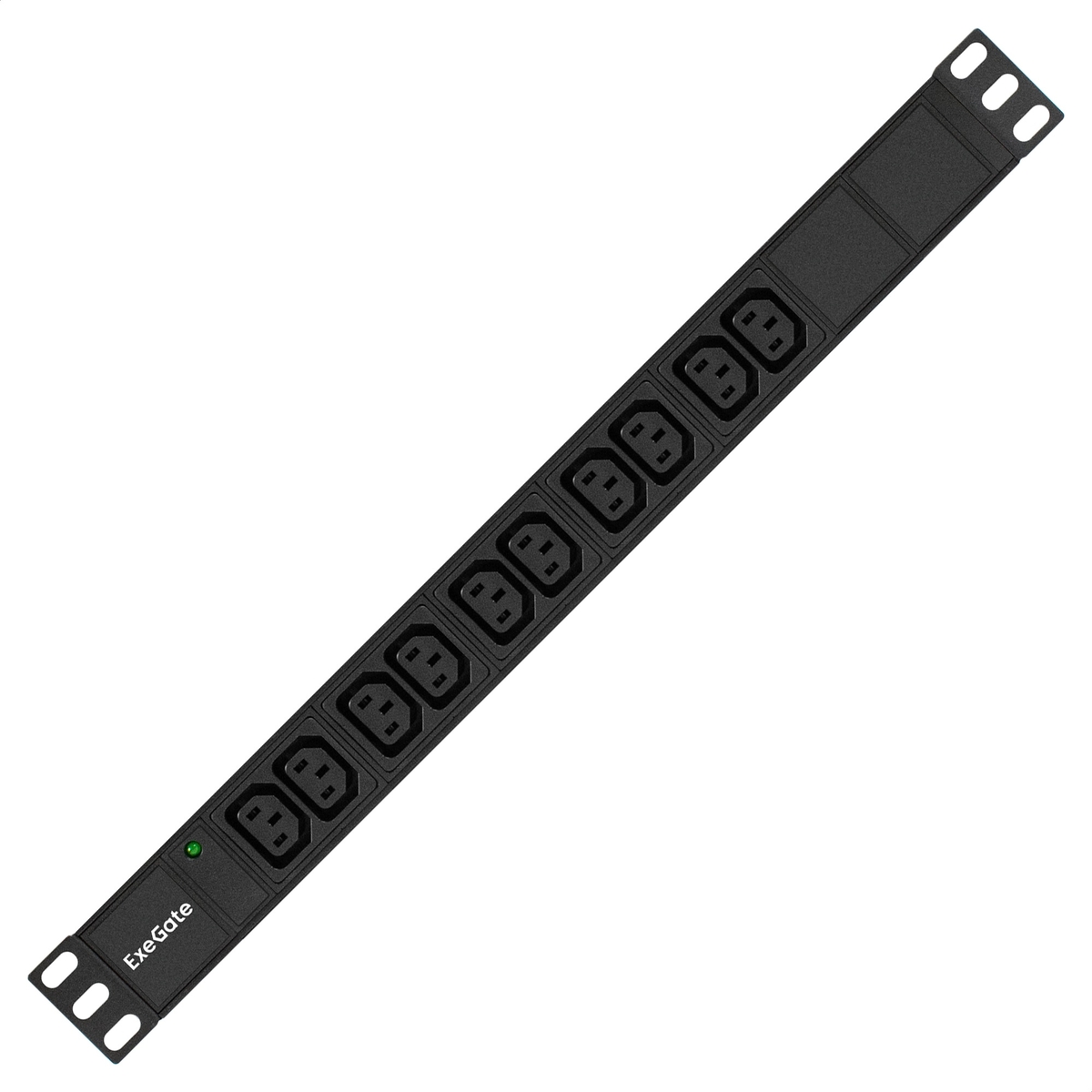 Блок розеток с кабелем с евровилкой ExeGate ServerPro PDU-19H005 Al-10C13-EU3CU (19", 1U, Алюминий, 10 IEC 320 C13, кабель с евровилкой VDE-250V-16A-3*1.5mm2, медь, 3 метра, индикатор питания, черный, RTL)