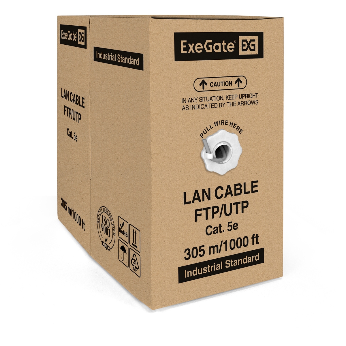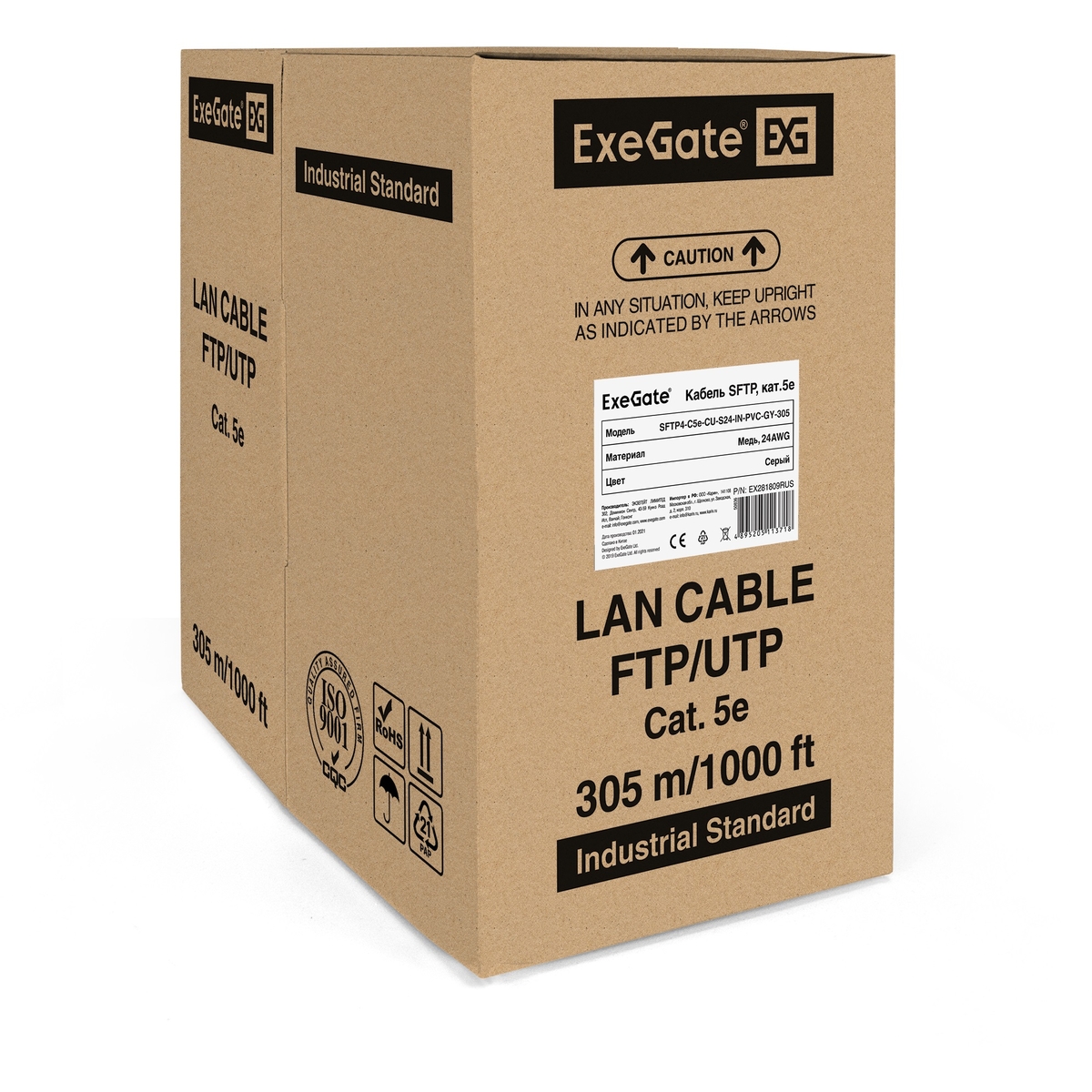 Кабель ExeGate SFTP4-C5e-CU-S24-IN-PVC-GY-305-FLUKE SFTP 4 пары кат.5e ExeGate медь, 24AWG, FLUKE® test pass, экран, бухта 305м, серый, PVC