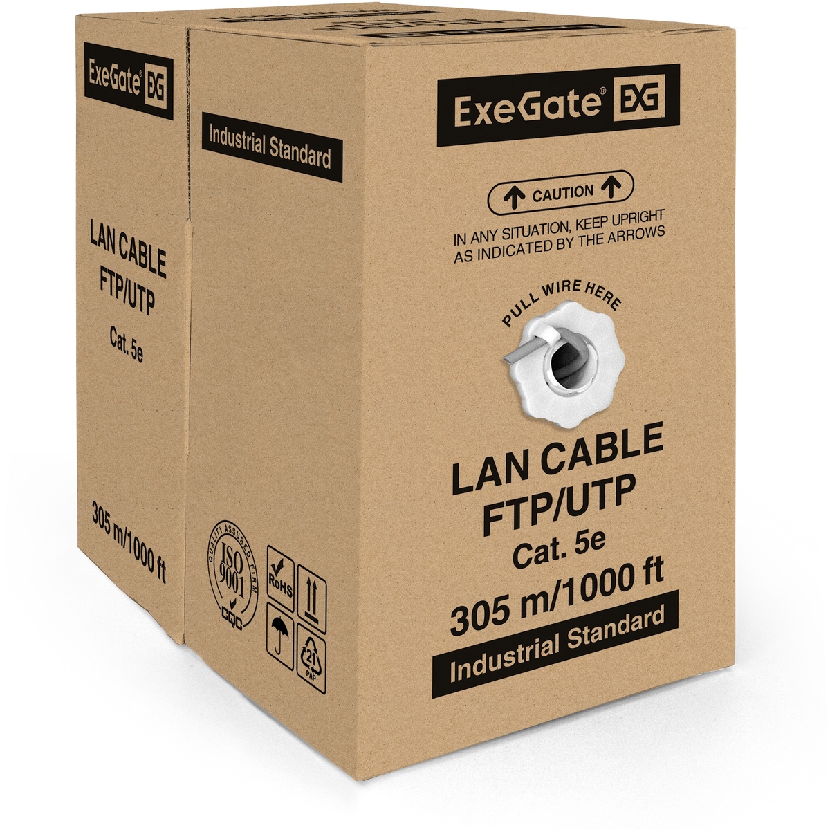 Кабель ExeGate UTP4-C5e-CCA-S25-IN-PVC-GY-305 UTP 4 пары кат.5e CCA, 25AWG, бухта 305м, серый, PVC