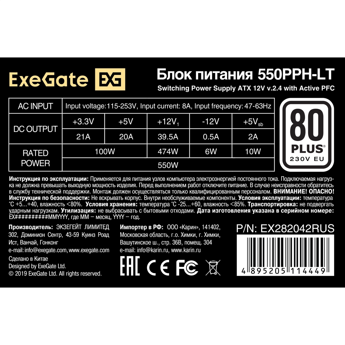 Exegate EX282042RUS-OEM-S Блок питания 550W 80 PLUS® 550PPH-LT-S-OEM
