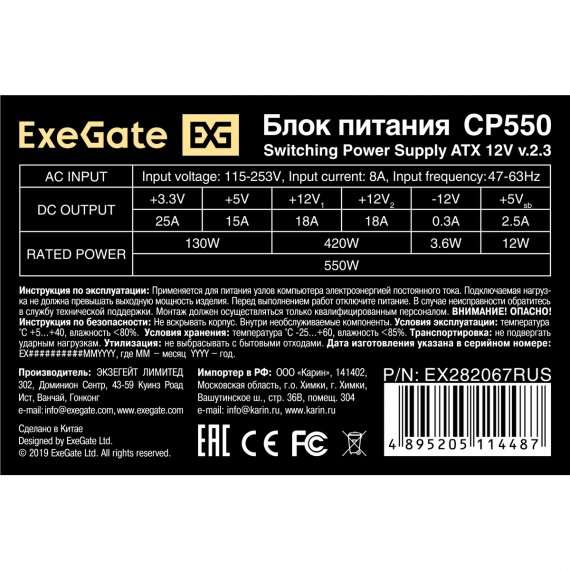 Блок питания 550W ExeGate CP550
