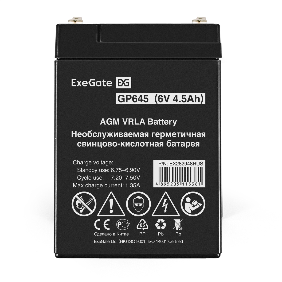 Exegate EX282948RUS Аккумуляторная батарея GP645 (6V 4.5Ah, клеммы F1)