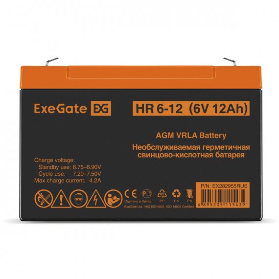 Exegate EX282955RUS Аккумуляторная батарея HR 6-12 (6V 12Ah, клеммы F1)