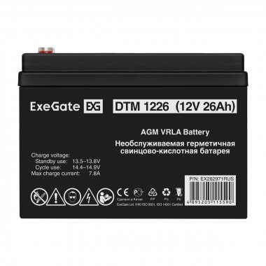Exegate EX282971RUS Аккумуляторная батарея DTM 1226 (12V 26Ah, болт М5)