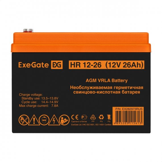 Exegate EX282973RUS Аккумуляторная батарея HR 12-26 (12V 26Ah, болт М5)