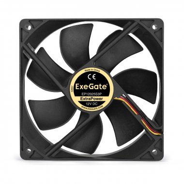 Вентилятор 12В DC ExeGate ExtraPower EP12025S3P (120x120x25 мм, Sleeve bearing (подшипник скольжения), 3pin, 1800RPM, 28dBA)