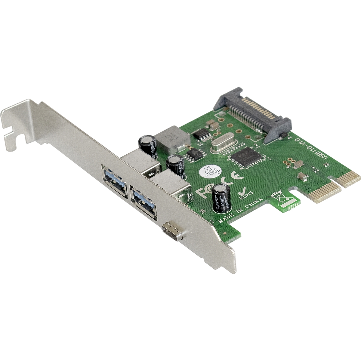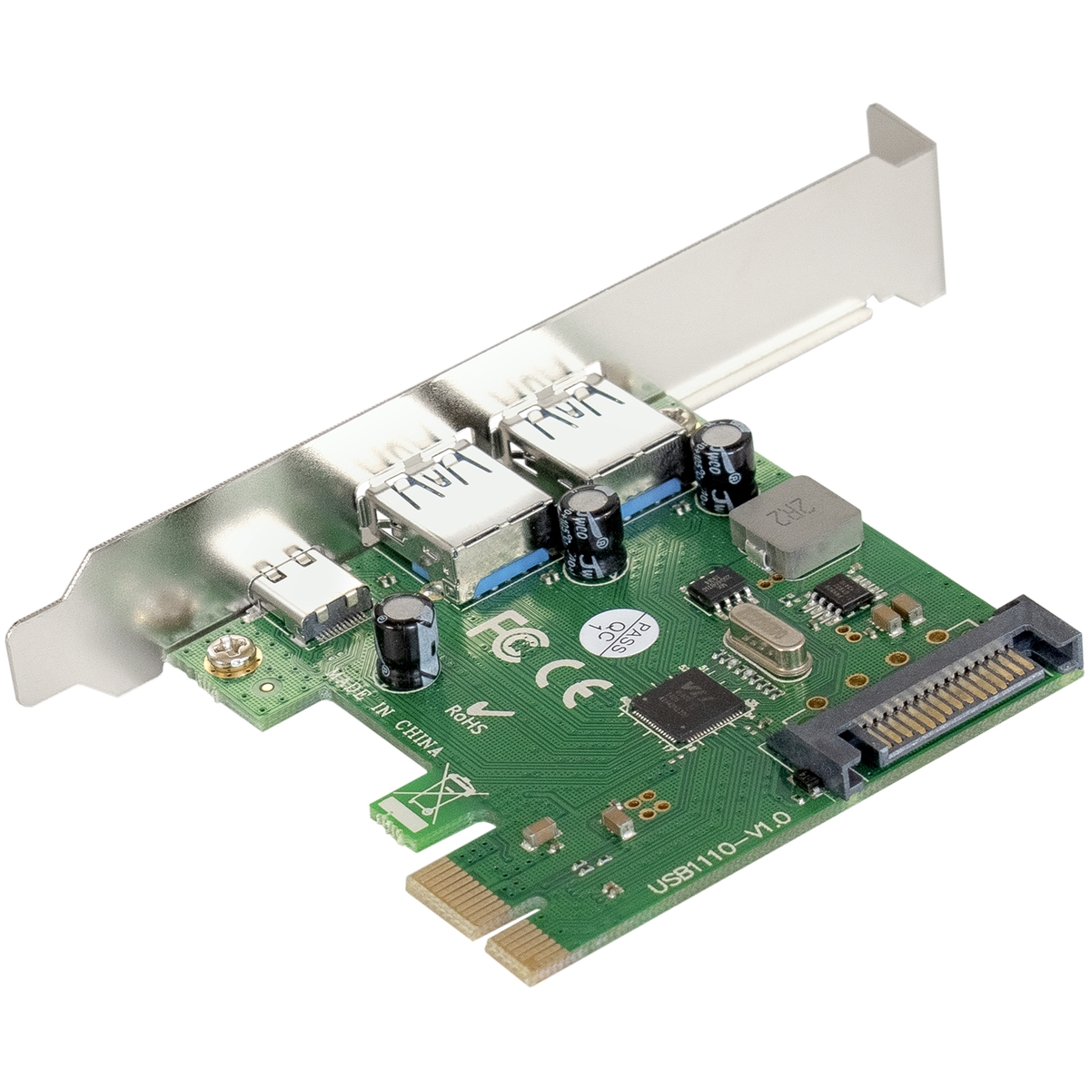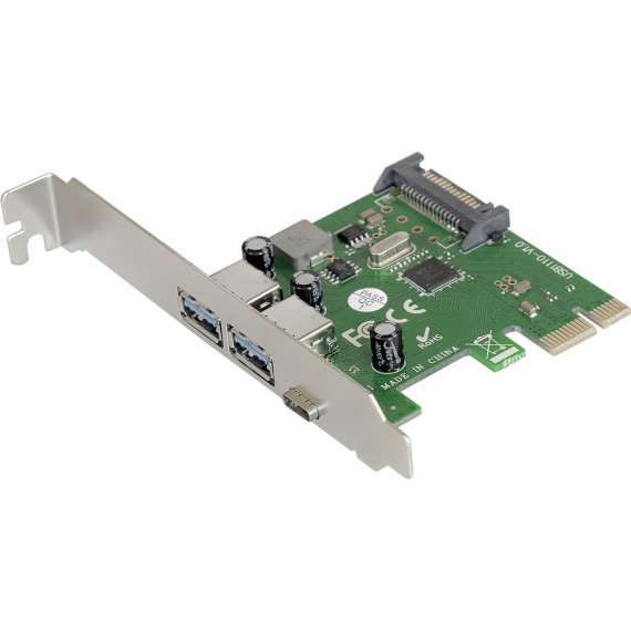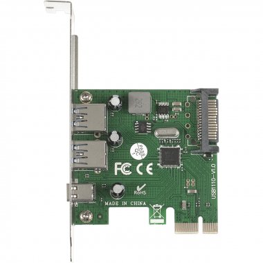 Контроллер ExeGate EXE-323 (PCI-E x1 v2.0, 2*USB3.0 ext. + 1*Type-C, разъем доп.питания, VIA Labs Chipset VL805)