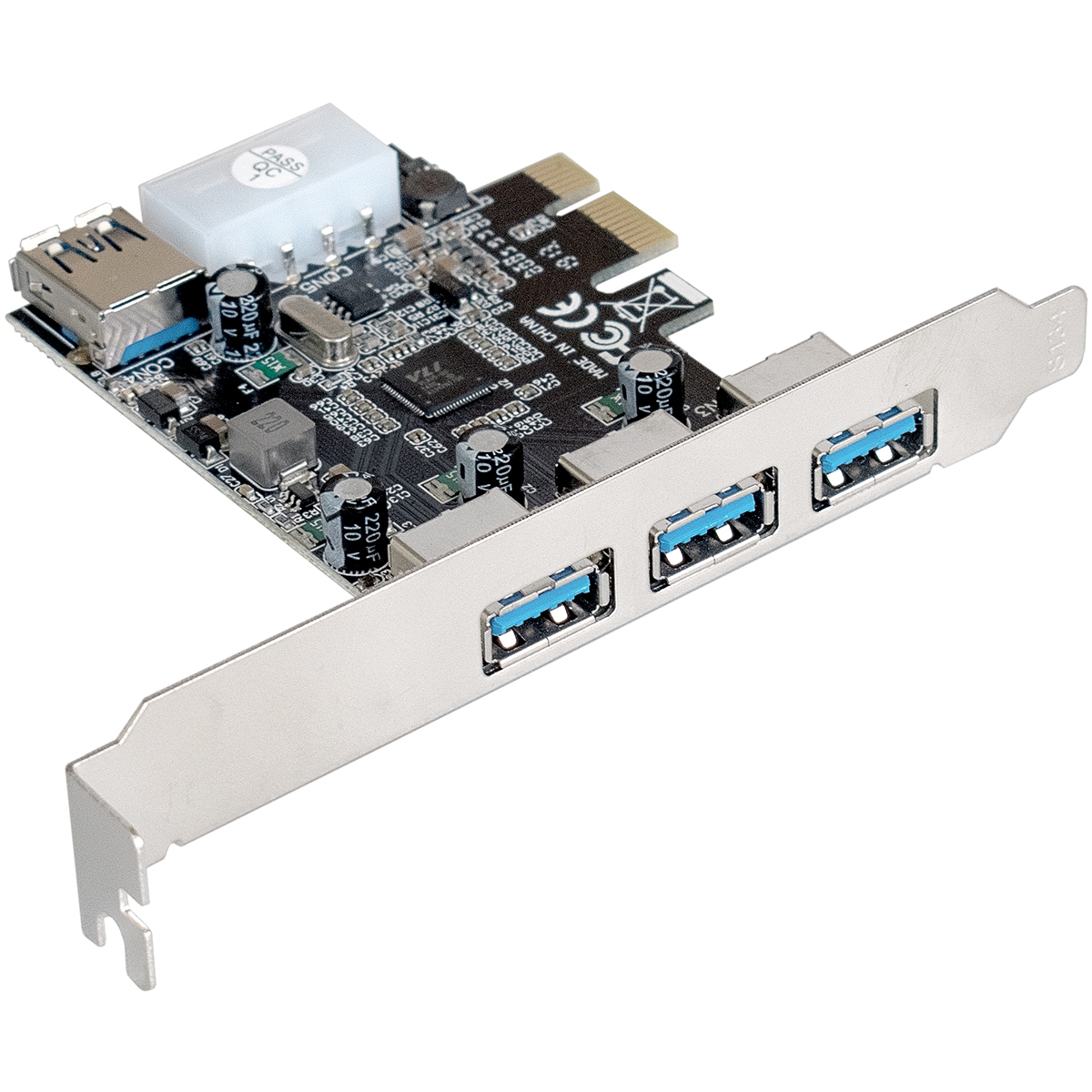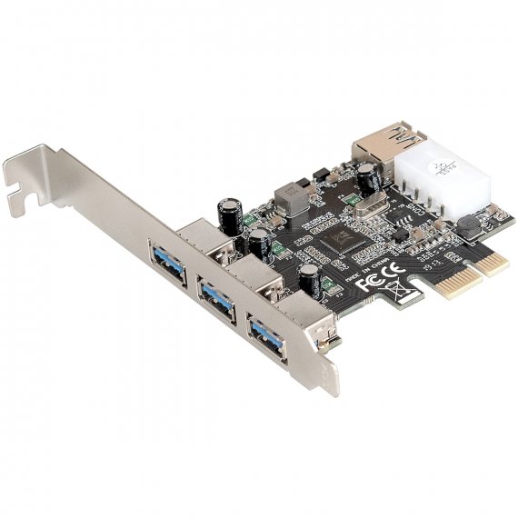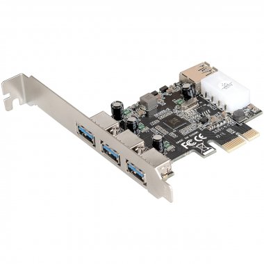 Контроллер ExeGate EXE-367 (PCI-E x1 v2.0, 3*USB3.0 ext. + 1*USB3.0 int., разъем доп.питания, VIA Labs Chipset VL805)