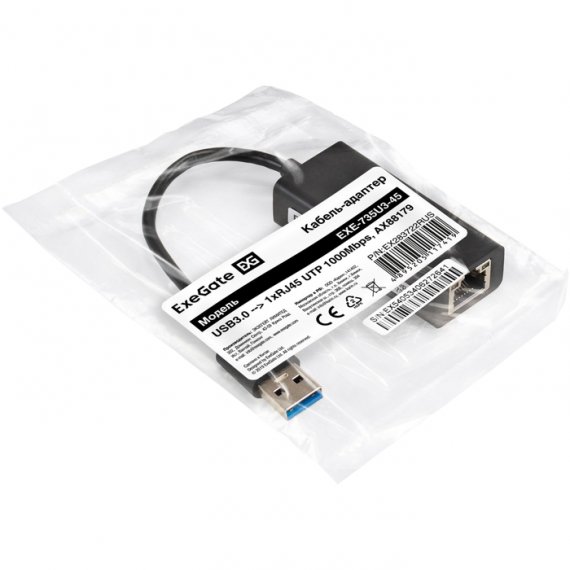 Кабель-адаптер ExeGate EXE-735U3-45 (USB3.0 --> 1xRJ45 UTP 1000Mbps, Axis Chipset AX88179)