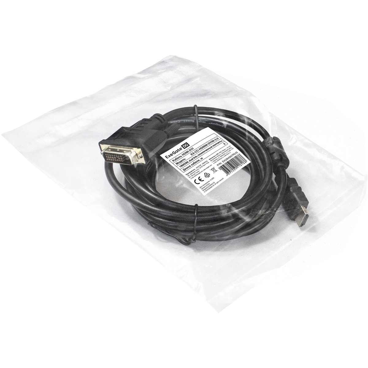 Кабель HDMI-DVI ExeGate EX-CC-HDMIM-DVIM-3.0 (19M/25M, dual link, 2 фильтра, 3м, позолоченные контакты)
