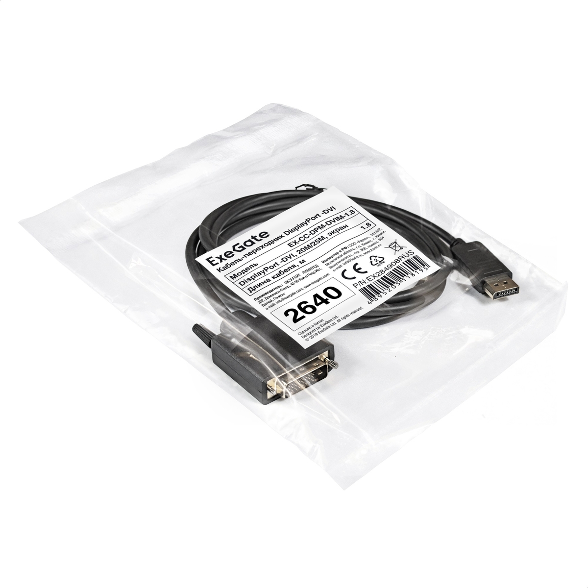 Кабель-переходник DisplayPort-DVI ExeGate EX-CC-DPM-DVIM-1.8 (20M/25M, 1,8м, экран)