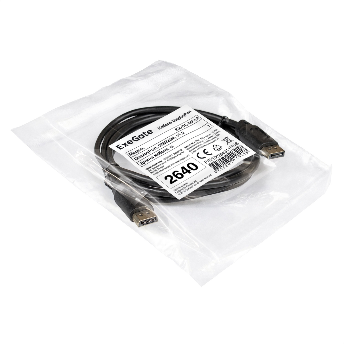 Кабель DisplayPort ExeGate EX-CC-DP-1.0 (20M/20M, 1м, v1.2)