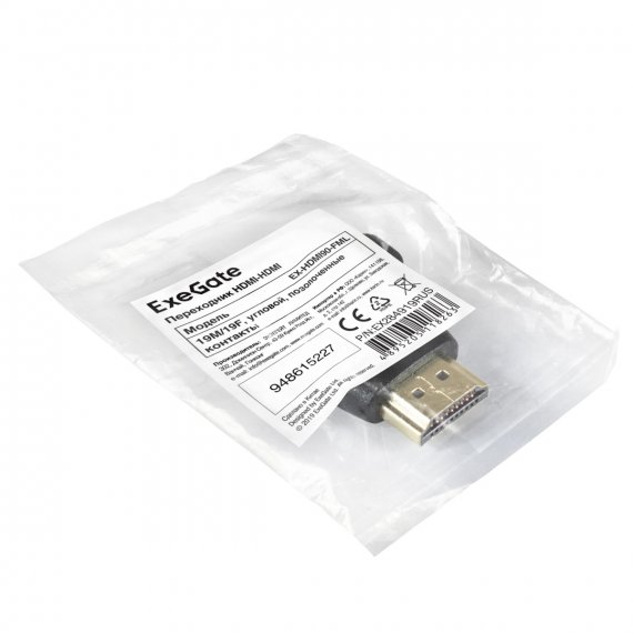 Переходник HDMI-HDMI ExeGate EX-HDMI90-FML (19M/19F, угловой, позолоченные контакты)