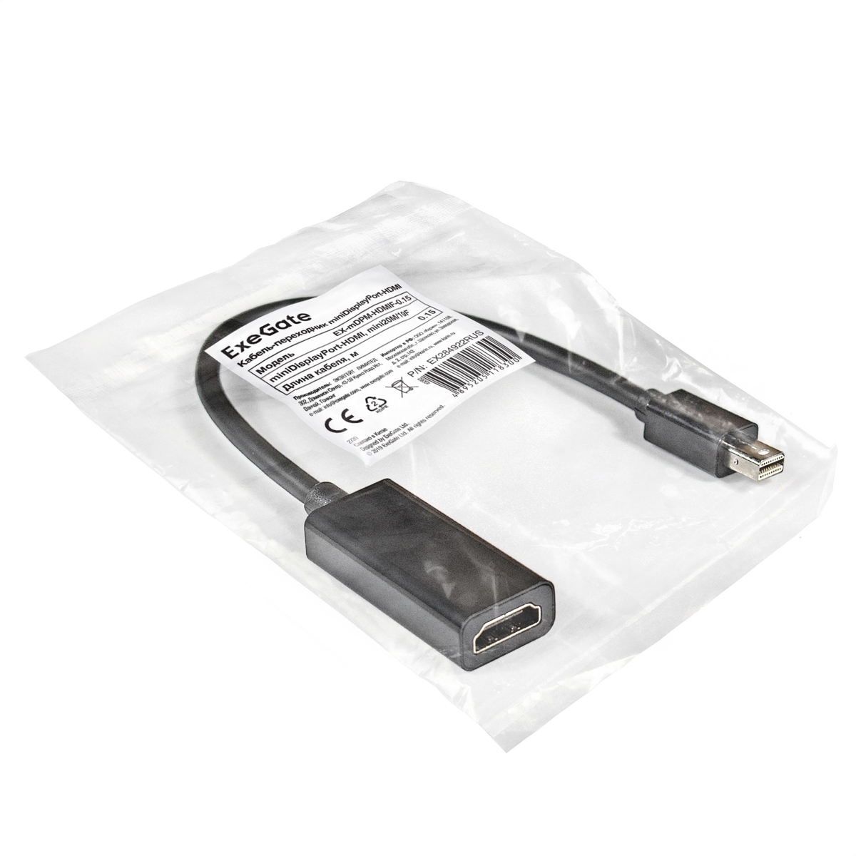 Кабель-переходник miniDisplayPort-HDMI ExeGate EX-mDPM-HDMIF-0.15 (mini20M/19F, 0,15м)