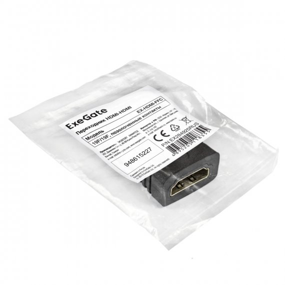 Переходник HDMI-HDMI ExeGate EX-HDMI-FFC (19F/19F, позолоченные контакты)