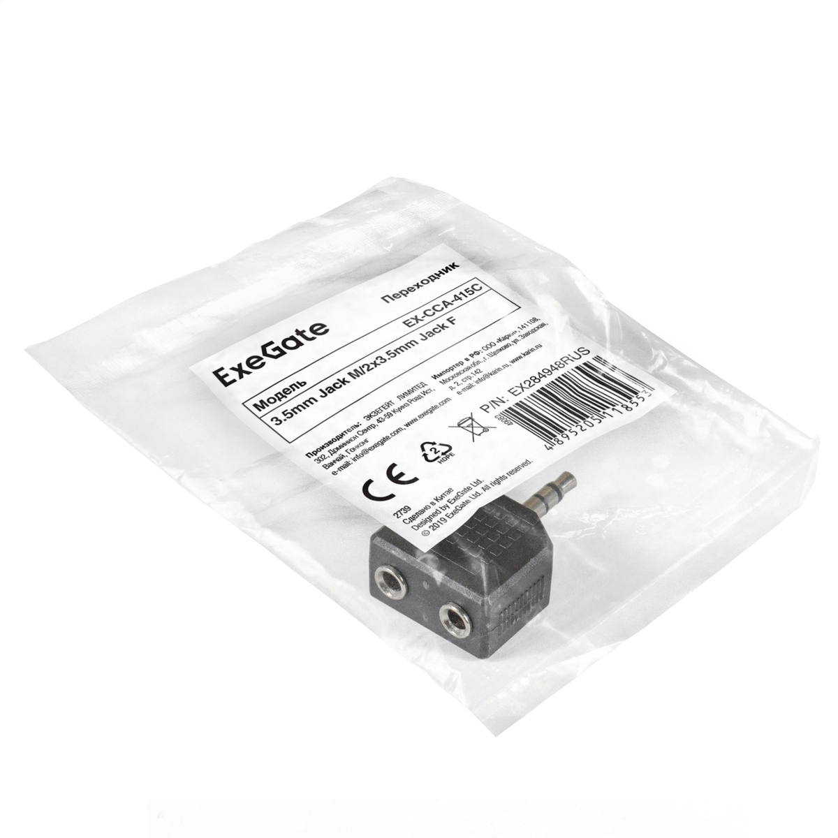 Переходник ExeGate EX-CCA-415C (3.5mm Jack M/2x3.5mm Jack F)