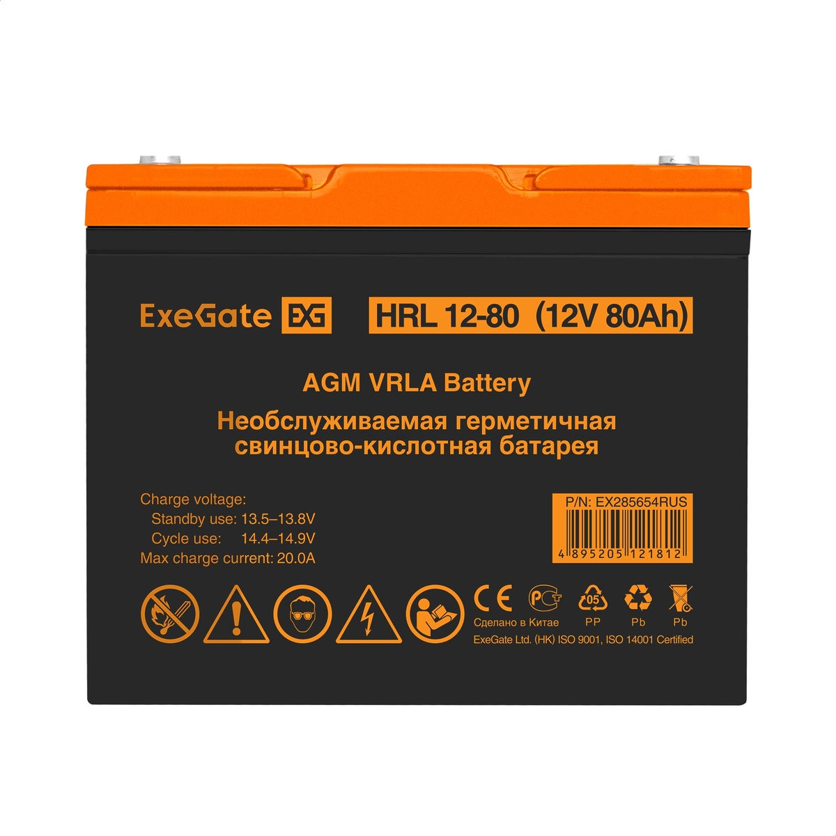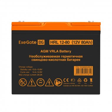 Exegate EX285654RUS Аккумуляторная батарея HRL 12-80 (12V 80Ah, болт М6)