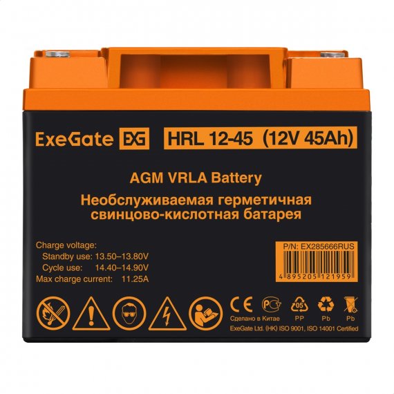 Exegate EX285666RUS Аккумуляторная батарея HRL 12-45 (12V 45Ah, болт М6)